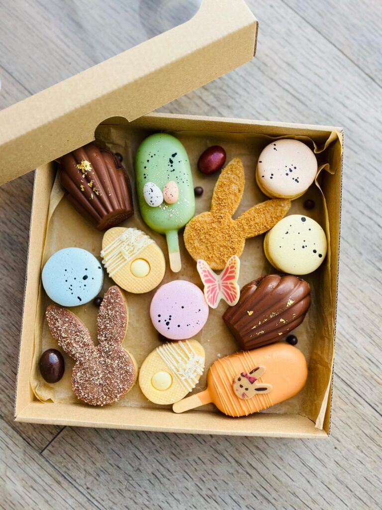 – mix krabicka: macarons 4ks, zajko lotus 1x, zajko slowtella 1ks, madlenka cokoladova 2x, vajicko linecne lemon curd 2x, nanuk /rozne druhy/ 2ks/ cena: 28€