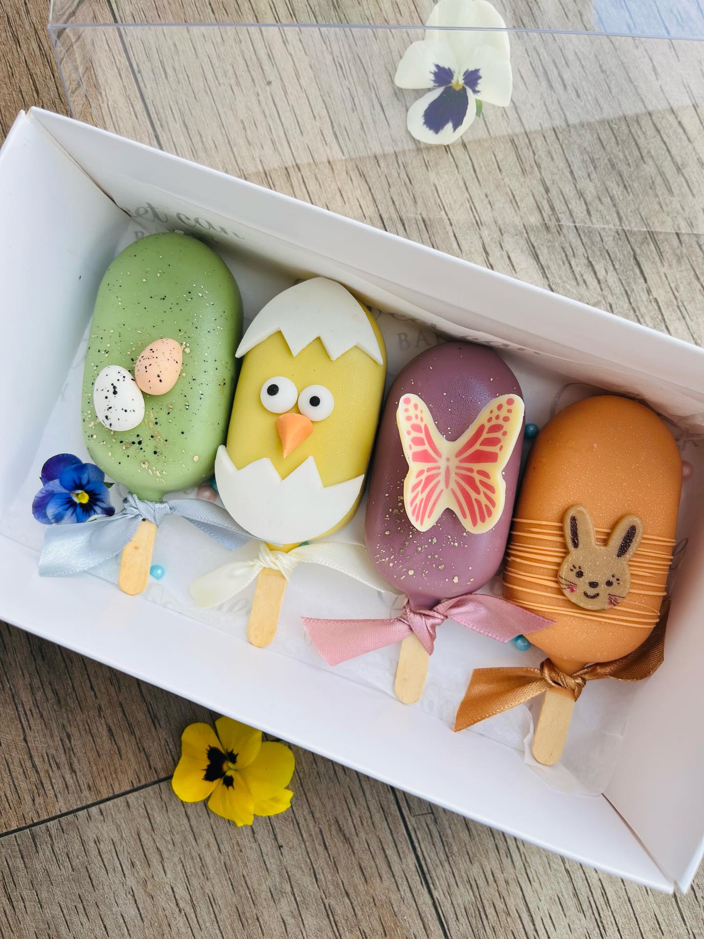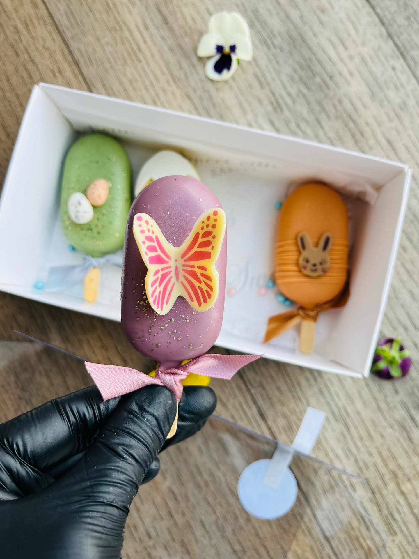 – velkonocne balenie nanukov/cake popsicles/ pre sibacov/sibacky -4ks v krasnom baleni v prichutiach: brownie & lentilk& ganache, pistacia&pralinè, marhulovy cheesecake, snickers/ cena: 20€