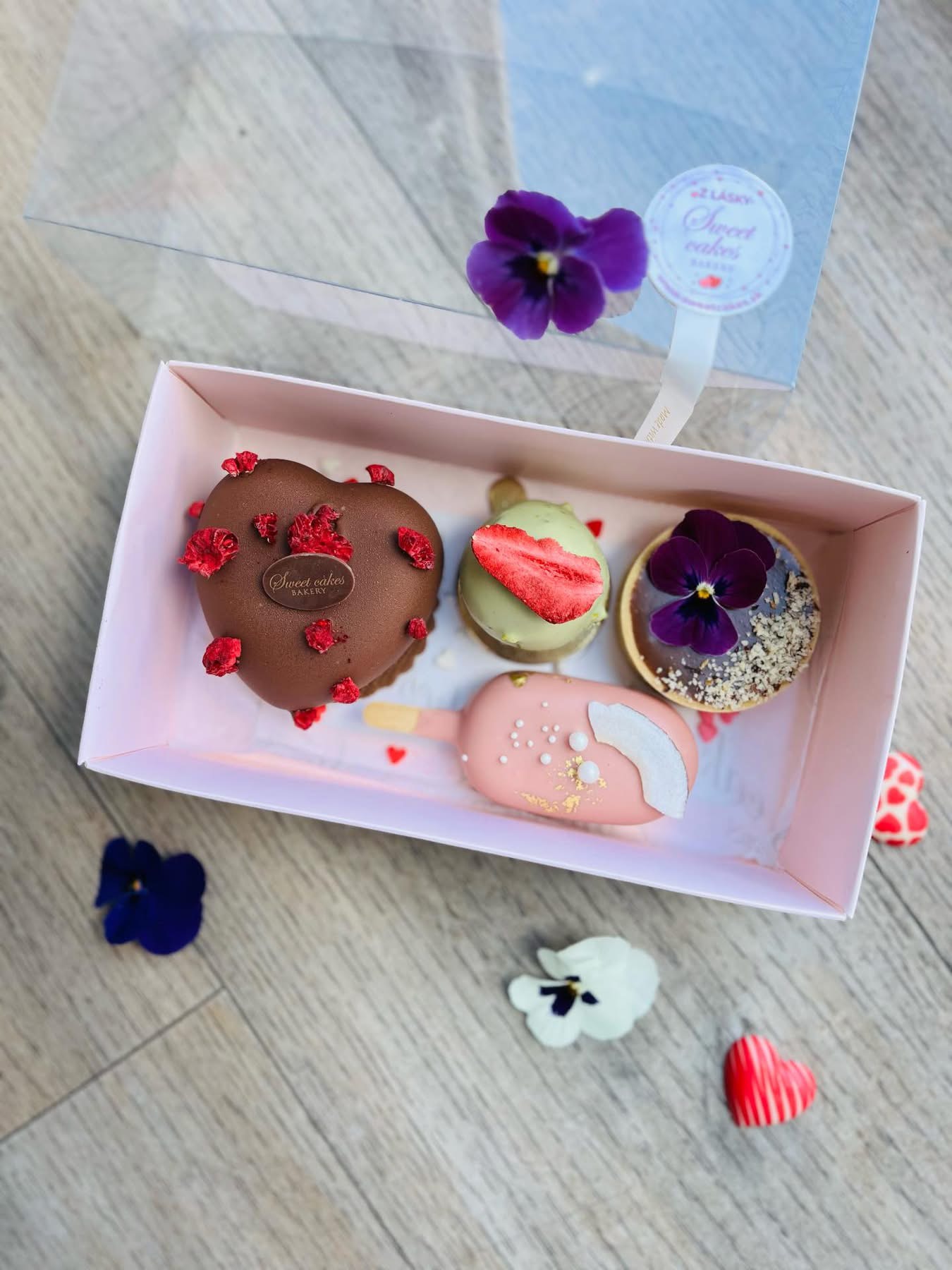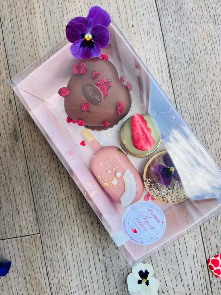 ❤️mala krabicka /cokoladovo-kavove srdce, rum&kokos nanuk, pistaciovo-mandlova gulicka s jahodovym stredom, lieskovcovo-nugatova tartaletka/ 19€