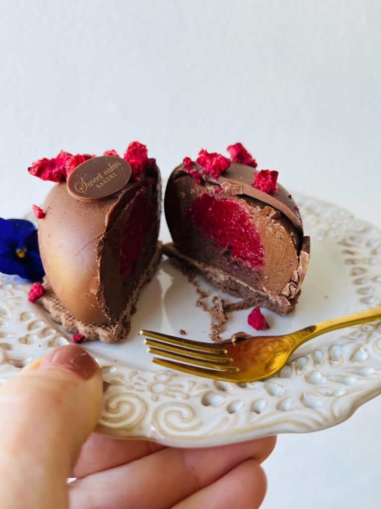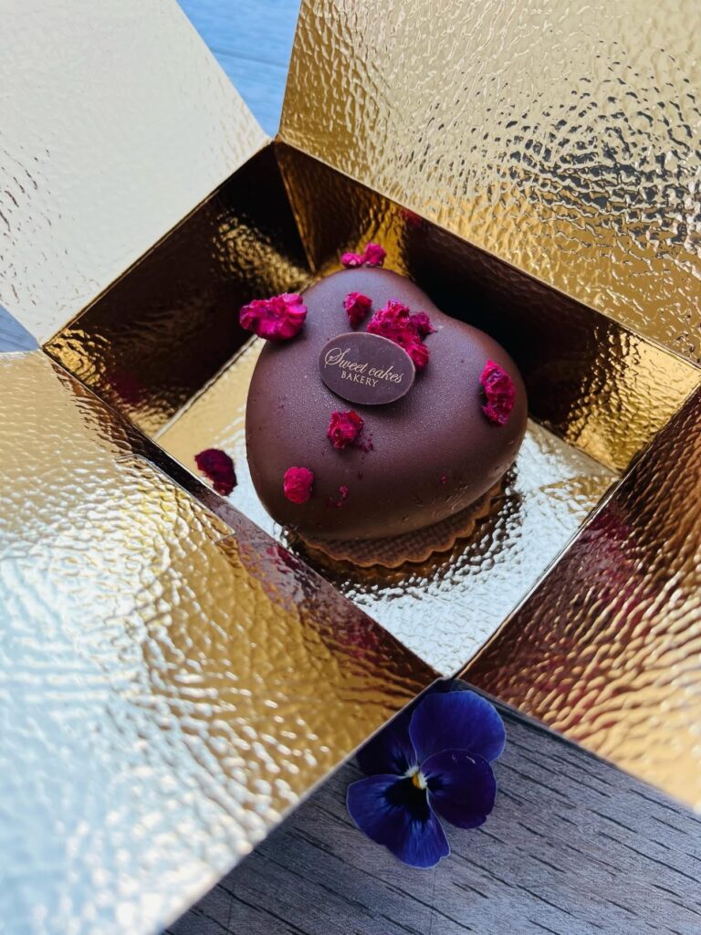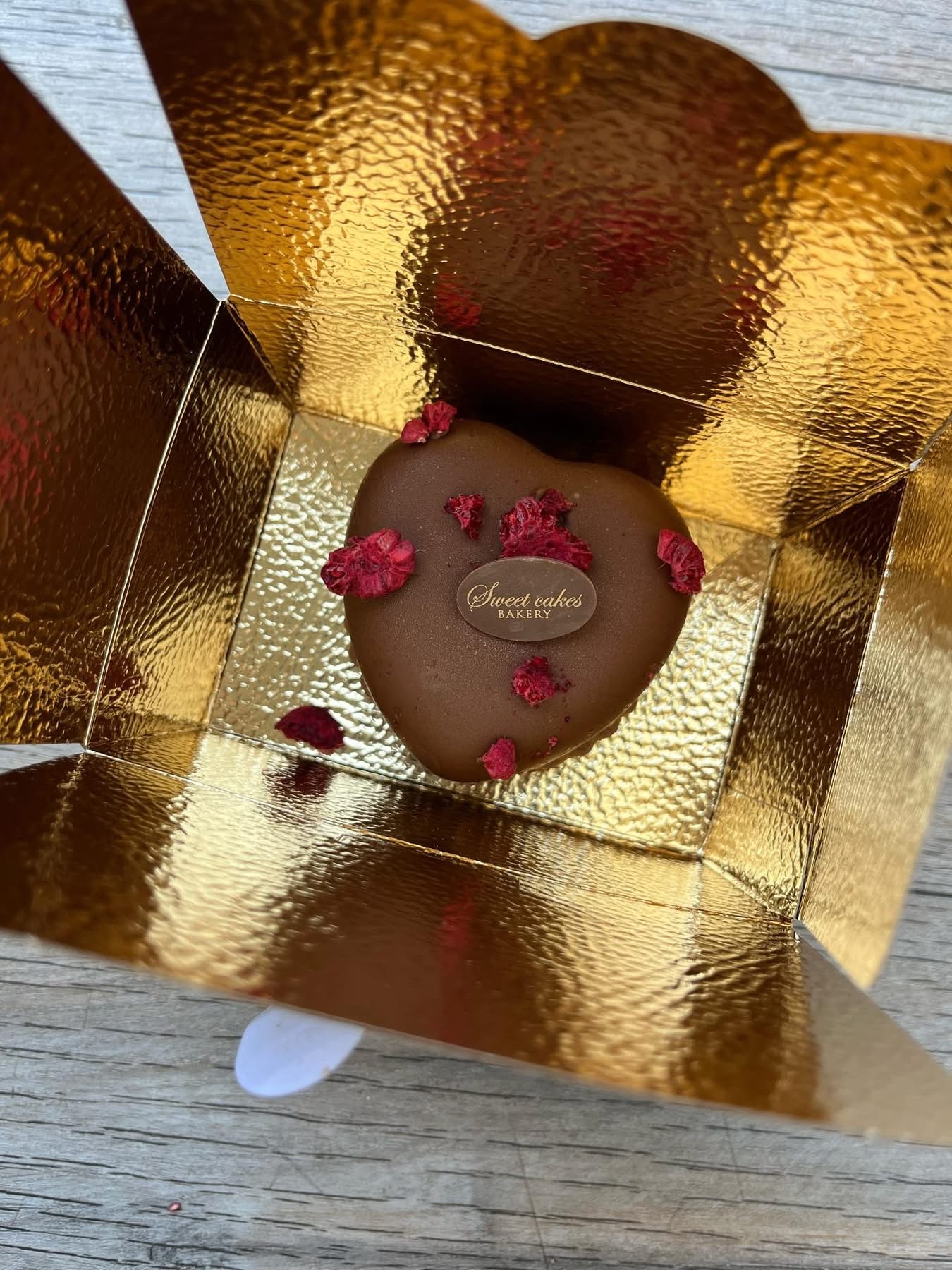 ❤️mini krabicka /cokoladovo-kavove srdce v chrumkavej callebaut cokolade s lyo malinami, malinovym stredom, kakaovym korpusom a maslovou kakaovou susienkou na spodu/ 9€